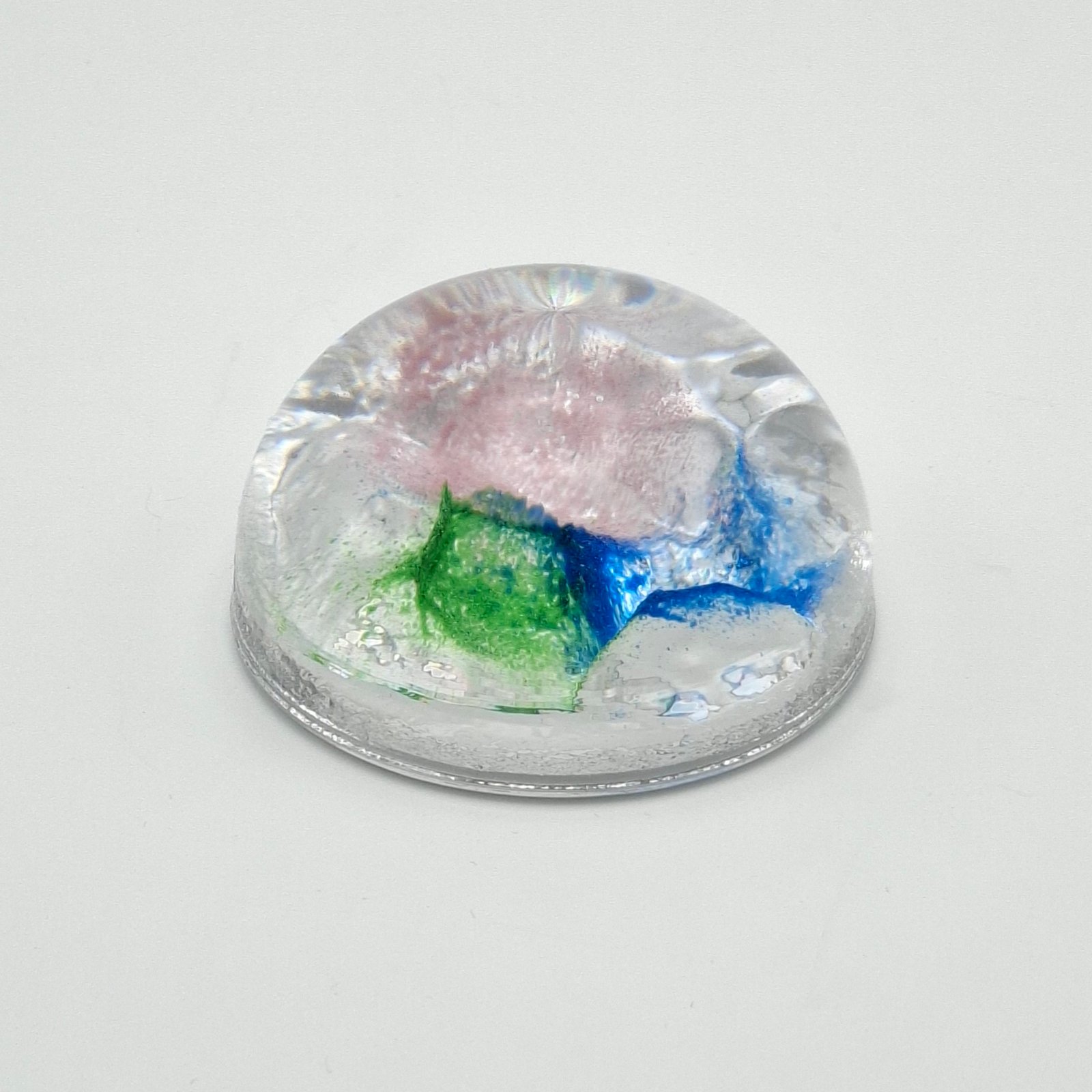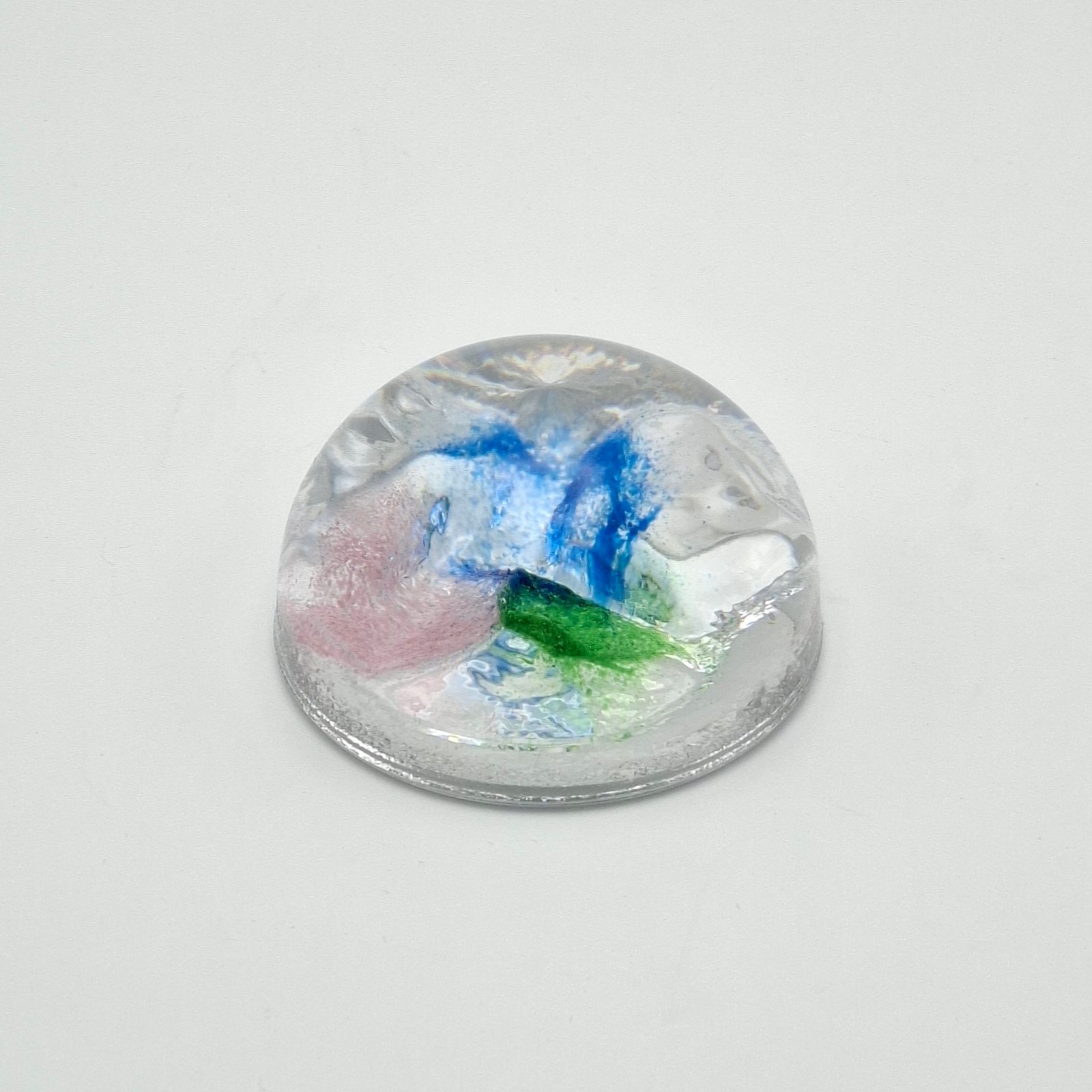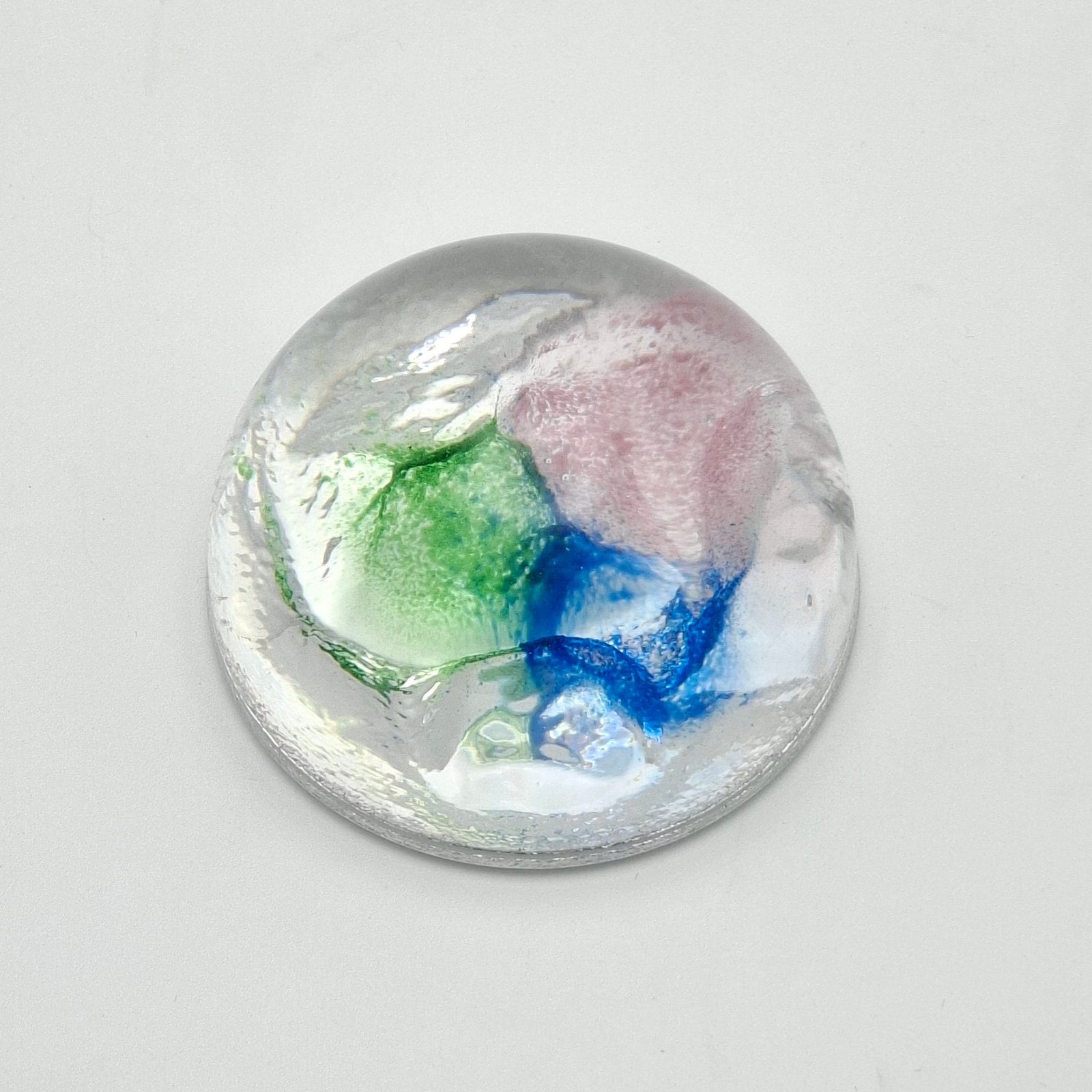 Helena Tynellin muotoilema taidelasi ”Rantakivet”. Valmistaja Riihimäen lasi. Halkaisija 8 cm.