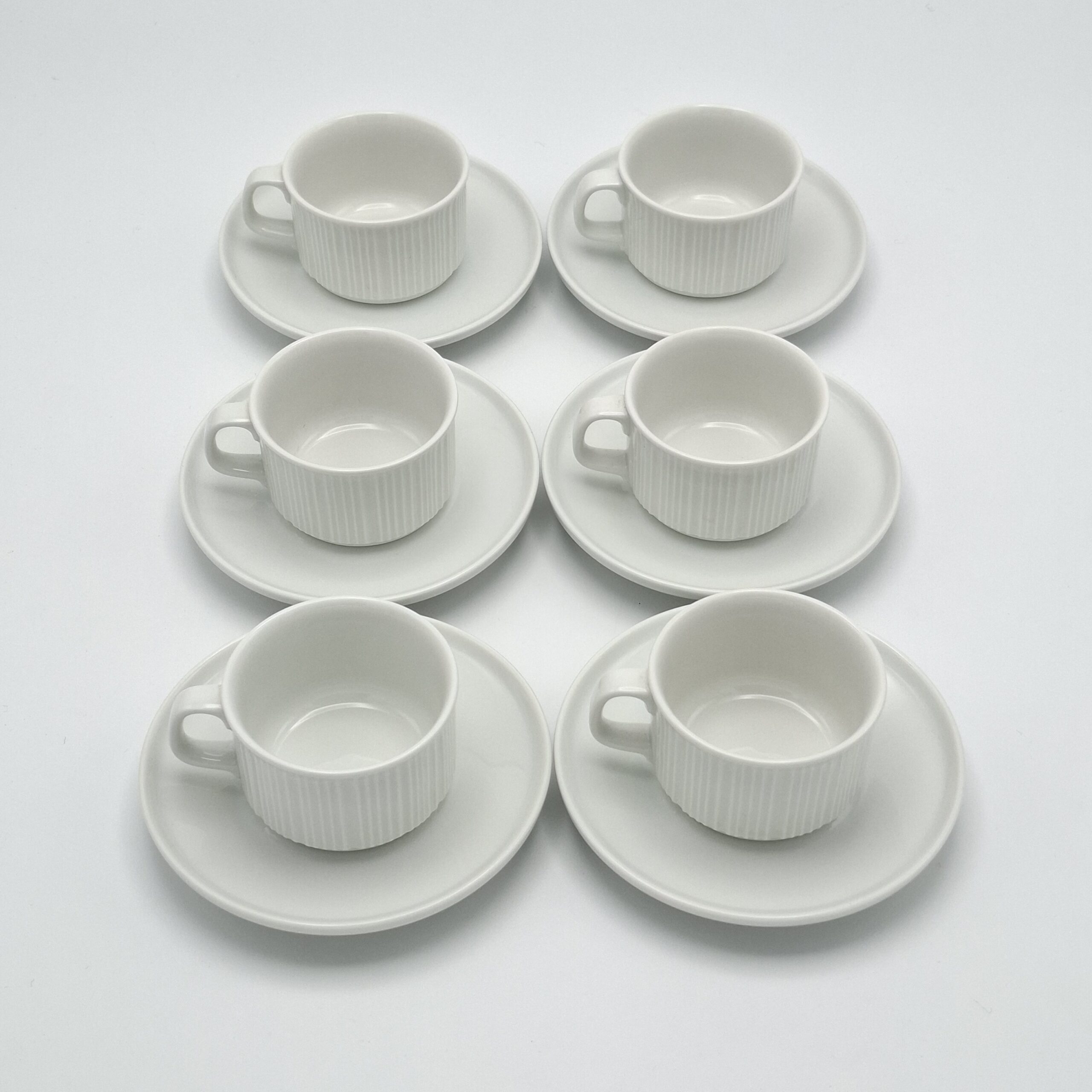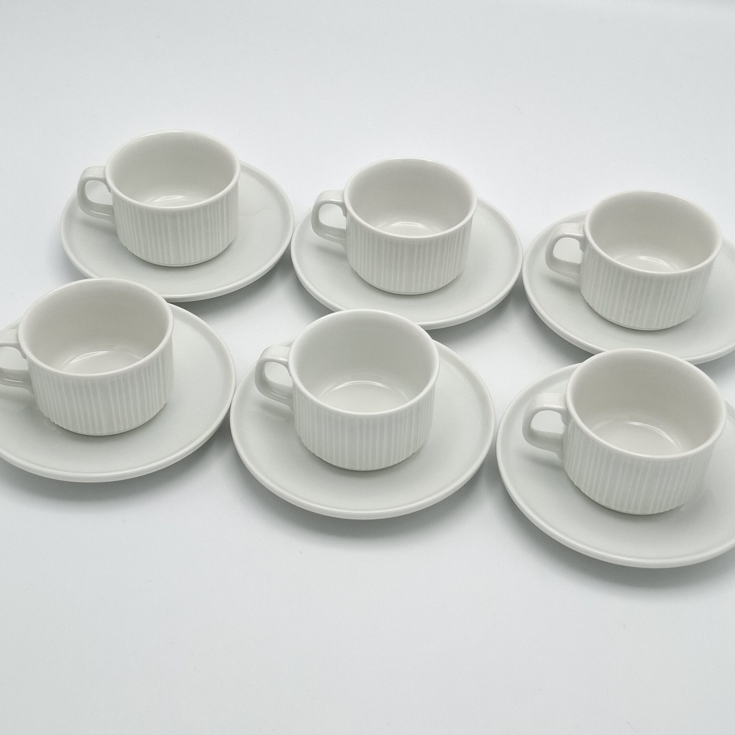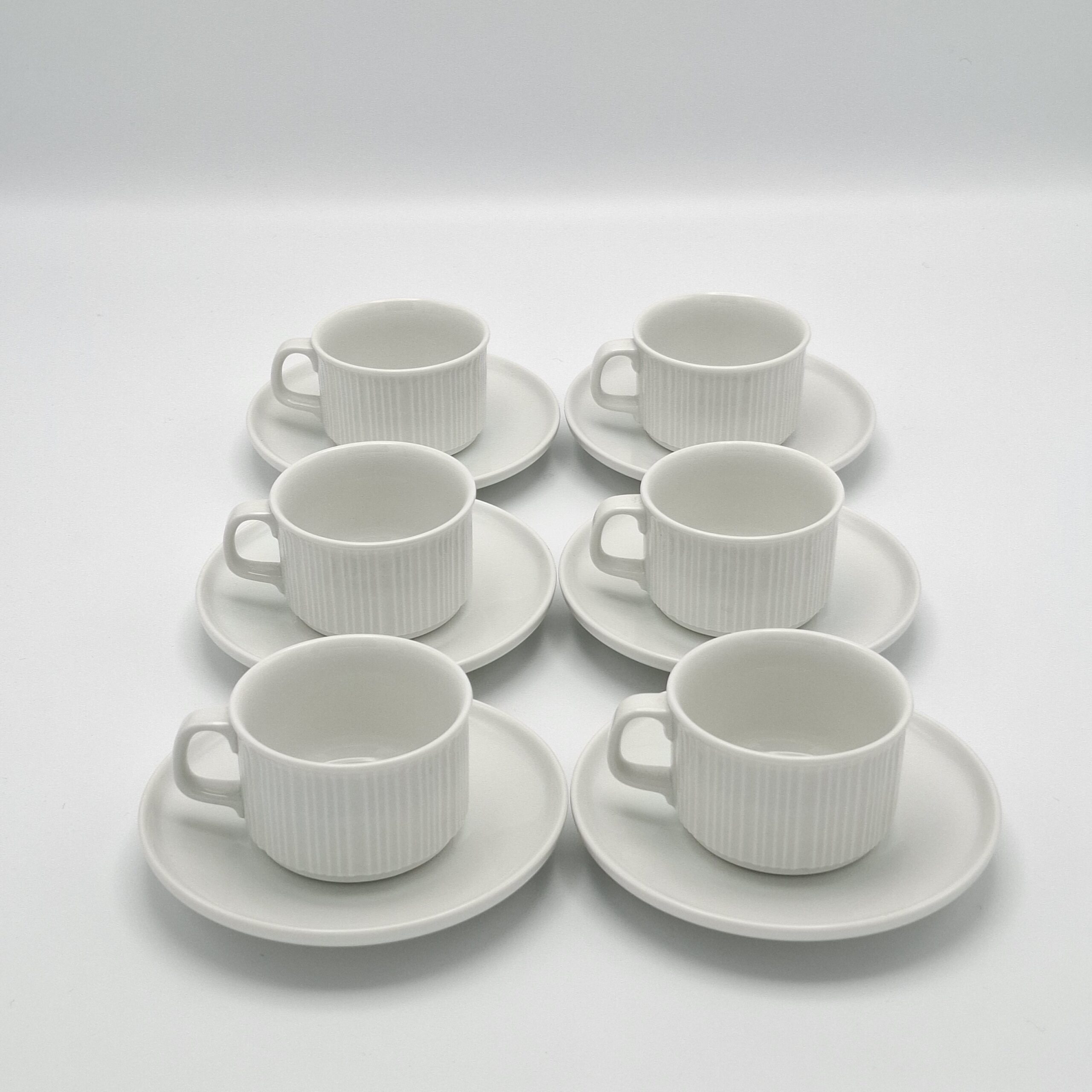 Myydään kuuden kupin ja asetin settinä. Saatavilla kaksi settiä.